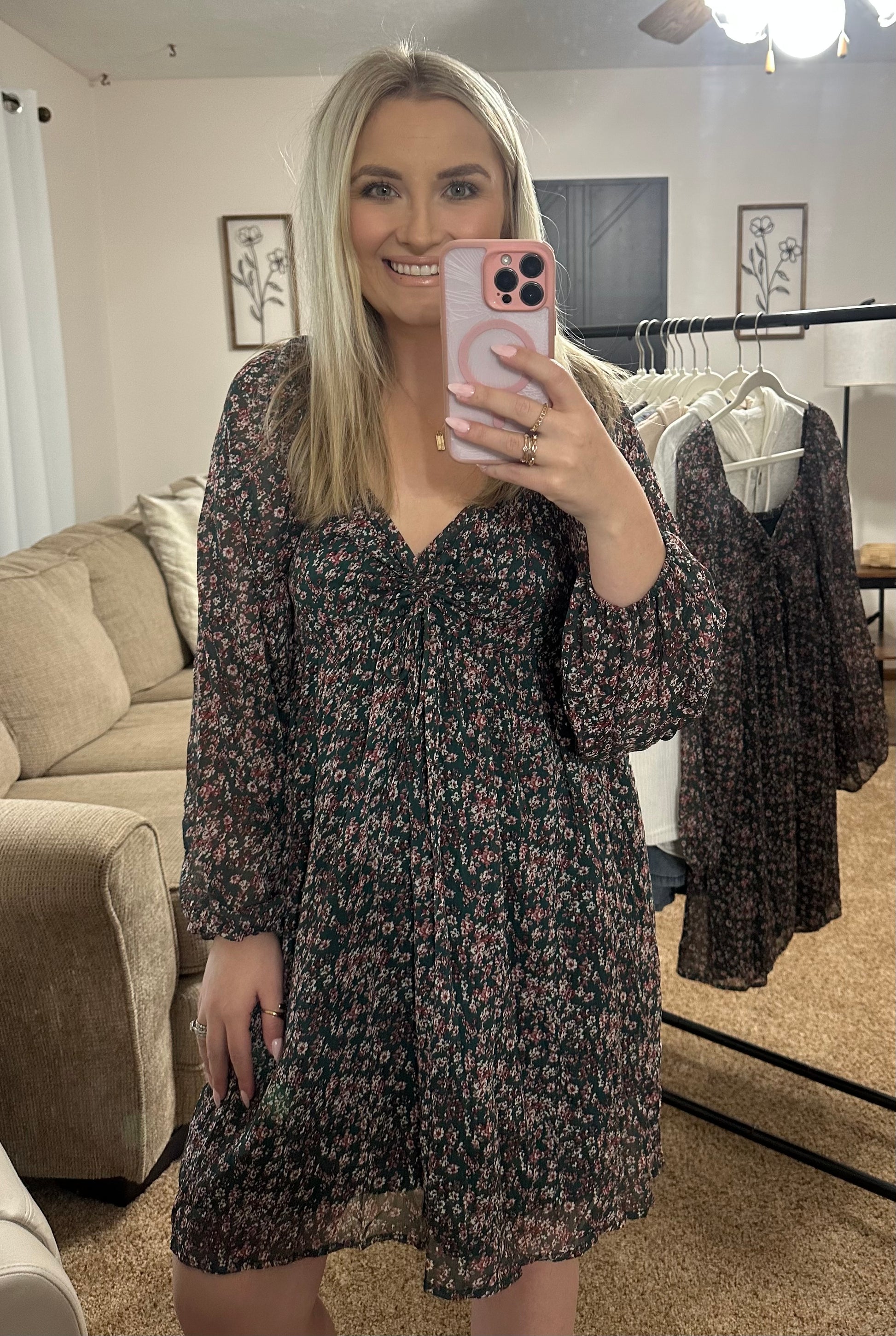 Capture the season beautifully in our Green Fall Floral Mini Dress, designed with rich tones and a flattering fit made for every autumn occasion. Perfect for fall family pictures, Thanksgiving gatherings, and fall weddings, it’s the dress you’ll reach for all season long.
